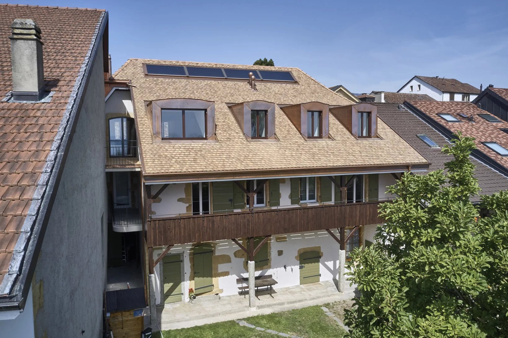 Im alten Dorf, in einer ruhigen Gegend mit Blick auf den See, befindet sich diese 4.5-Zimmer-Wohnung im ersten Stock eines schönen Hauses aus dem 19. Jahrhundert.